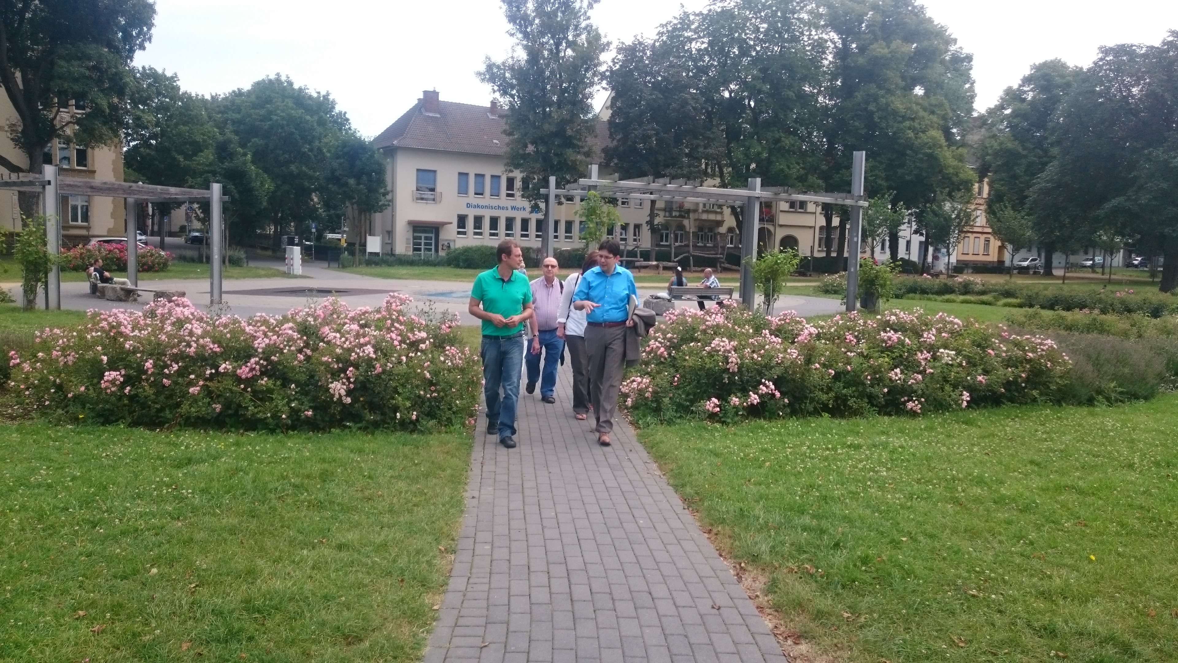Mit dem Sozialdezernenten Hr. Mang und den Grünen im Neuwieder Stadtrat besichtigten wir das Projekt der Sozialen Stadt in Neuwied. Auch in Neuwied ist das Projekt ein großer Erfolg. Die Kommunikation und der Zusammenhalt im Quartier wurden gestärkt, was man zum Beispiel am Projekt der Gemeinschaftsgärten sieht. Außerdem wurde das Viertel auch baulich aufgewertet, doch dies ist nicht das Wichtigste. Das Quartiersmangement bringt die verschieden Akteure im Viertel an einen Tisch, vermittelt, unterstützt bei Ideen und stellt Räume zur Verfügung. Damit diese Strukturen am Ende des Projektzeitraums nicht zerbrechen, muss das Quartiersmangegement als Anlaufpunkt für die Ehrenamtlichen erhalten bleiben. Ich bin sogar der Meinung, dass, eine solche koordinierende Stelle für alle Viertel in den Städten, unabhängig der sozialen Situation gewinnbringend und belebend wäre.